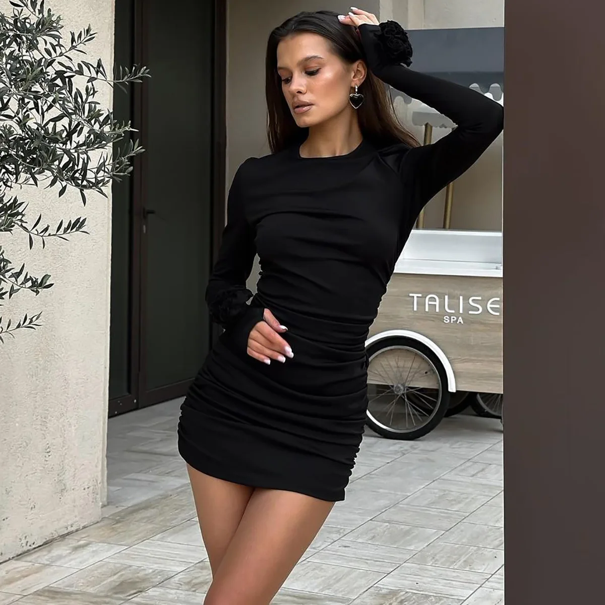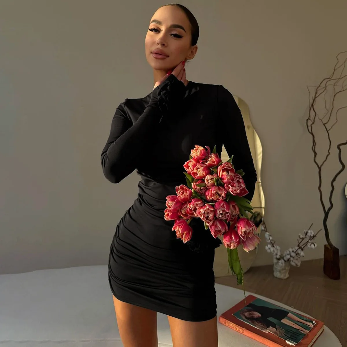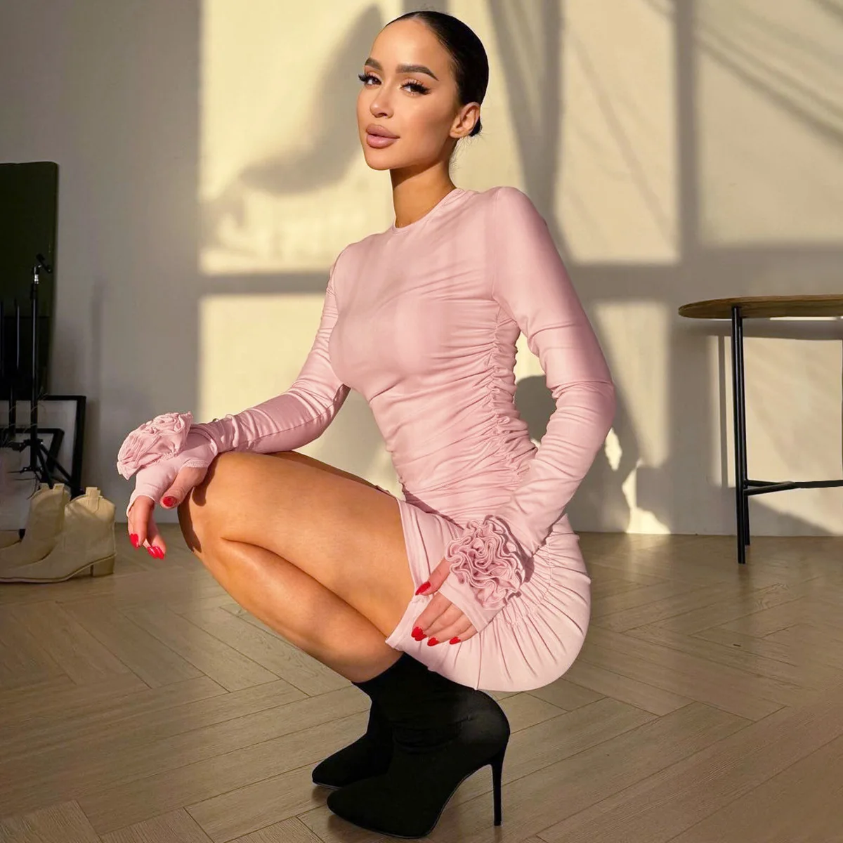 Woman Clothing Flowers Long Sleeve Party Evening Party Club Short Dress Package Wrap
