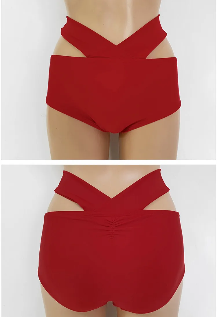 The high-waist design of this bikini offers a flattering fit, enhancing your curves while providing comfort.